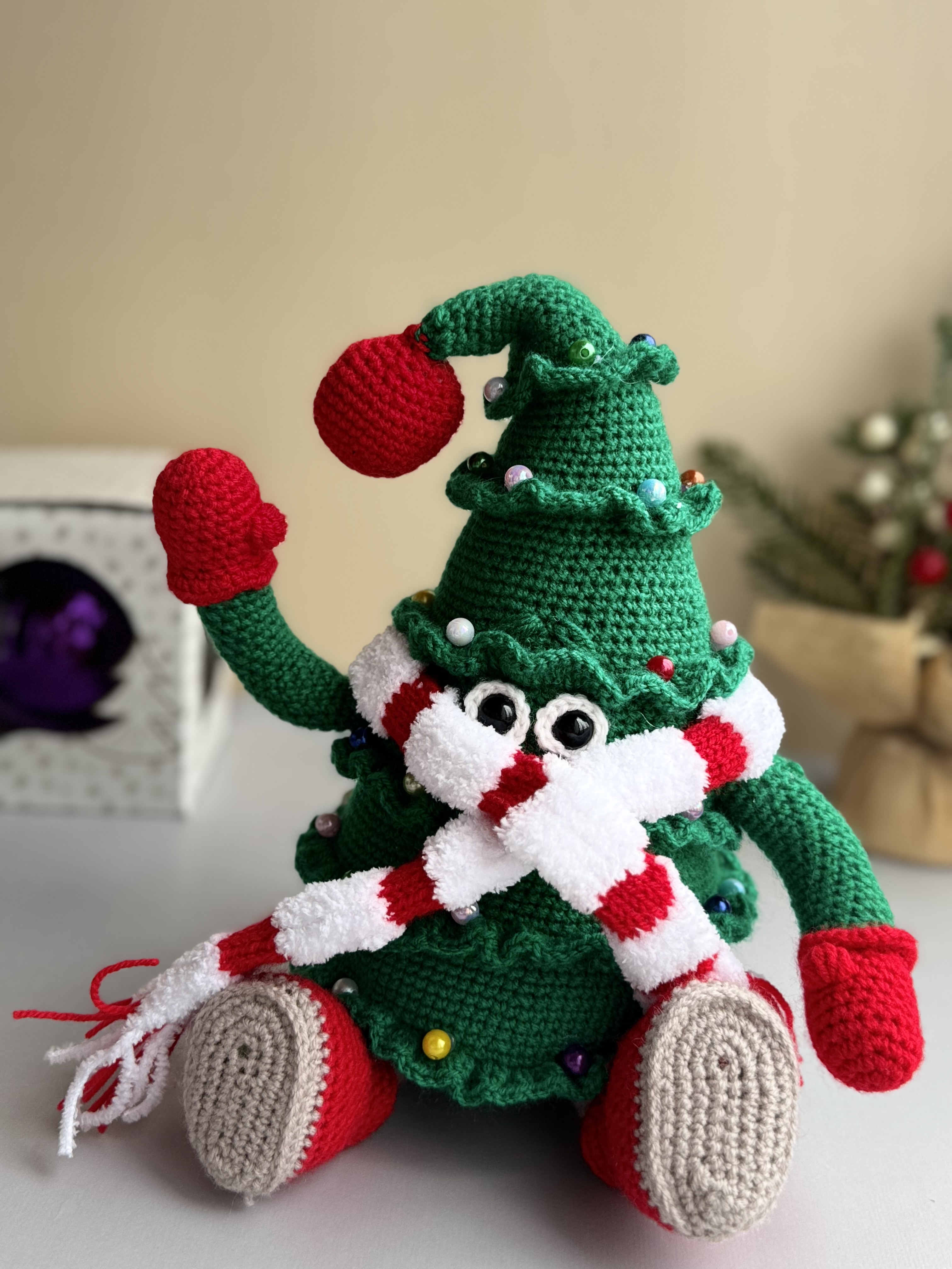 Описание: Елкин-палкин в шарфе, игрушка размером 24 см.